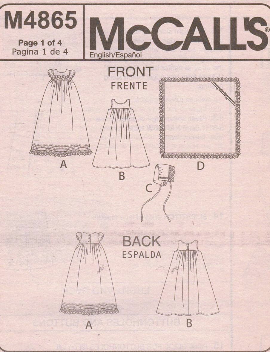 Mccalls Pattern 4865 Infants Christening Dress Slip Bonnet And Blanket Sizes Newborn Through Large Sewing Pattern Heaven